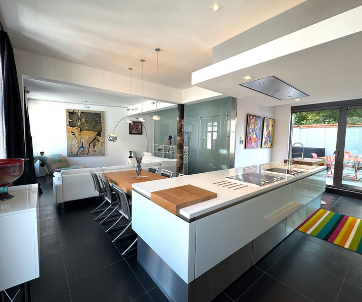 Ontdek deze uitzonderlijke high-end woning in een van de meest centrale en charmante wijken van Brugge. Op wandelafstand van iconische plekken zoals de Spinolarei, het Jan Van Eyckplein, de Burg, de Markt en de Vismarkt, combineert deze woning het bruisende stadsleven met de rust van een rustige woonomgeving. De woning werd in 2010 grondig gerenoveerd met oog voor detail, waarbij moderne architectuur, hoogwaardige materialen en een verfijnde afwerking centraal stonden. Elk element werd zorgvuldig gekozen om een sfeer van luxe en hedendaags comfort te creëren. Indeling: op het gelijkvloers vindt u een ruime inkomhal, twee inpandige garages met automatische poorten, een grote bergruimte, een praktische wasplaats met ingebouwde kasten, een overdekte koer en een kelder. De 1°V biedt een gastentoilet, een lichtrijke leefruimte met eet- en zithoek, en een hyper-geïnstalleerde Miele-keuken (oven, stoomoven, vaatwasser, koelkast, teppanyaki, kookplaat en koffiemachine). Vanuit de keuken heeft u toegang tot een ruim, zonnig terras, ideaal voor ontspanning of een diner. Op de 2°V bevinden zich twee slaapkamers, waarvan één met ingebouwde kasten, en een ruime, luxueuze badkamer met ligbad, inloopdouche, lavabomeubel, ingemaakte kast, bidet en toilet. De 3°V onder het gebinte herbergt de masterbedroom, eveneens met ingebouwde kasten en een praktische douchekamer. De woning is voorzien van zonnepanelen, domotica, EPC-label B, centrale verwarming op aardgas (deels vloerverwarming) en gekeurde elektriciteit. Ideaal voor wie het levendige stadsleven wil combineren met rust, comfort en luxe. Een perfecte plek voor levensgenieters die een moderne woning zoeken in een historisch kader.