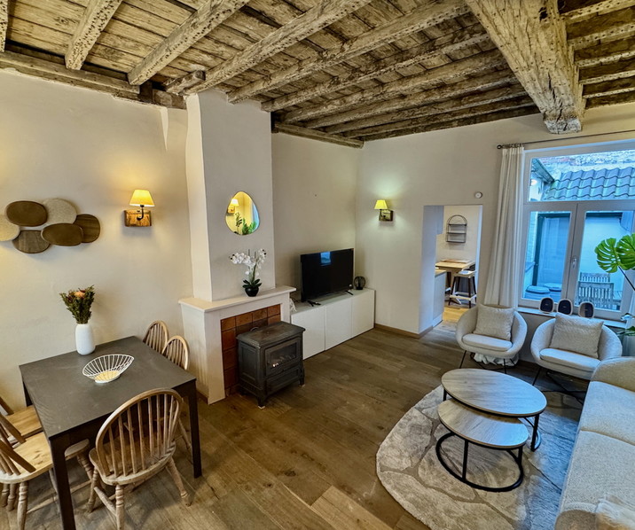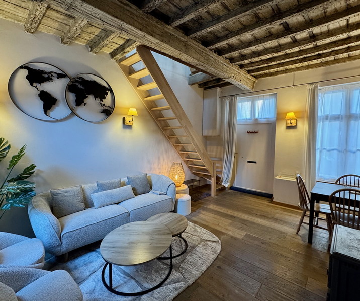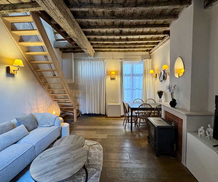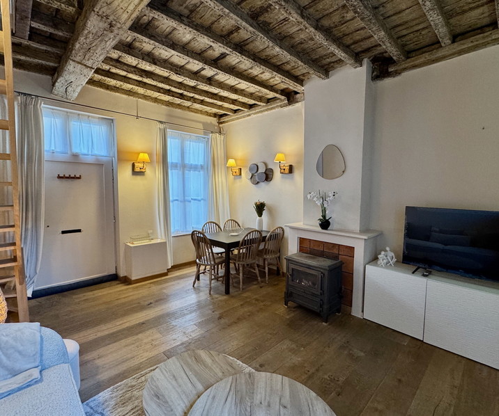Op een steenworp van ’t Zand, in het historische centrum van Brugge, bevindt zich deze uiterst CHARMANTE GEMEUBELDE WONING met STADSKOERTJE. Dankzij de centrale ligging geniet je van een vlotte verbinding naar het station, de in- en uitvalswegen & de autosnelweg. Indeling: Glvl: gezellige leefruimte in parketvloer en een authentiek houten gebinte . Aansluitend is er de ingerichte keuken die uitkomt op het koertje. De badkamer beschikt over een lavabomeubel, een douche en een combi wasmachine/droogkast. Daarnaast is er ook een apart gastentoilet. Op de 1°V is er een ruime en lichtrijke slaapkamer. De tweede verdieping biedt een extra ruimte die perfect kan dienen als bureau of dressing (nokhoogte 1m70). Verwarming op aardgas. De elektriciteit is conform. Epc: 281 kWh/m², uc: 20250827-0003672482-RES. Zonneboiler. K.I.: €183. IDEAAL voor EXPATS. .
