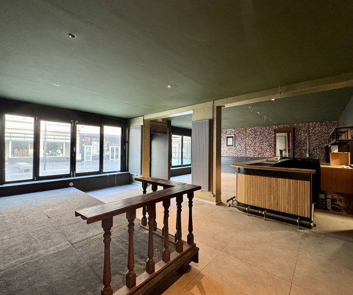 Het bovengelegen appartement heeft een oppervlakte van ca. 140 m² en dient verder opgefrist te worden. Desgewenst kan het handelsgelijvloers en het appartement opnieuw opgesplitst worden in verschillende en/of afzonderlijke entitteiten. De ingerichte (gemeubelde) foto's zijn visualisaties.. Vrij van huur. Beschikbaar bij akte.