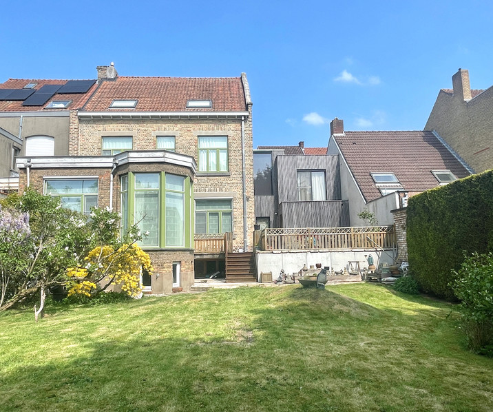 Charmante STADSWONING met TUIN & GARAGE gelegen op wandelafstand van het historische centrum van Brugge en met alle voorzieningen binnen handbereik: winkels, scholen, openbaar vervoer, sportfaciliteiten, … . Deze statige en tot in de puntjes gerenoveerde woning uit de jaren ’20 werd volledig gestript en heropgebouwd met klassevolle en duurzame materialen. Met een grondopp. van 533 m² & een bruikbare vloeropp. van maar liefst 396 m², biedt deze woning ruimte, luxe en karakter in overvloed. Indeling: mooie inkomhal met authentieke vloer en gastentoilet. Lichtrijke leefruimte in parketvloer ingedeeld in een gezellige zithoek met gashaard en prachtig tuinzicht, een eetplaats met leeshoek en een ruime bureauhoek. De high-end ingerichte leefkeuken is uitgerust met Gaggenau-inbouwtoestellen (o.a. oven, stoomoven, koffiezet, kookplaat, vaatwasser, frigo, …) en biedt toegang tot het terras & de tuin. De ruime kelderverdieping, met zicht en toegang tot de tuin, is ingericht met extra keuken en wasruimte en heeft verder nog een polyvalente ruimte ideaal als hobbyruimte, atelier of mancave. Op de 1°V is er de masterbedroom met tuinzicht en een ensuite badkamer (ligbad, dubbel lavabomeubel, toilet). Verder zijn er nog 4 volwaardige slaapkamers verdeeld over de 1ste en 2de verdieping en 2 extra badkamers met hoogwaardige afwerking (inloopdouche, ligbad, dubbele lavabo’s, toiletten).